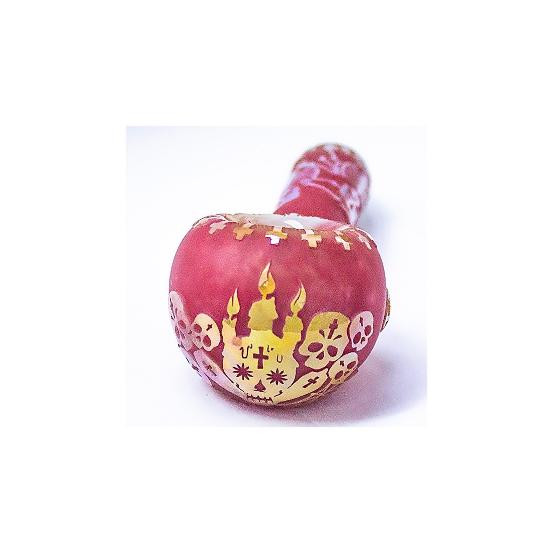 LIBERTY GLASS PIPA FRIT SPOON DEATH RED LIBERTY GLASS PIPA FRIT SPOON DEATH RED