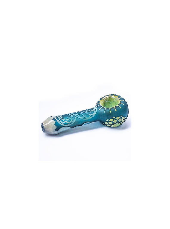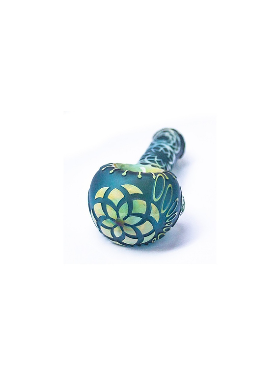 ¡Liberty Glass está ubicada en las afueras de Oregón! Se especializan en fusionar obras de arte trabajadas en técnica sandblasted en conjunto con vidrio. Esta pieza de arte, toma múltiples etapas para presentarse como producto terminado: desde el vaciado de la pieza en blanco hasta el arenado de los diferentes diseños. ¡Representando al 503 con orgullo, Liberty Glass sopla pipas spoon con diseño exclusivo, plataformas petroleras, toboganes de flores y más!