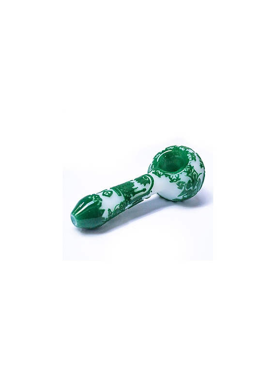 ¡Liberty Glass está ubicada en las afueras de Oregón! Se especializan en fusionar obras de arte trabajadas en técnica sandblasted en conjunto con vidrio. Esta pieza de arte, toma múltiples etapas para presentarse como producto terminado: desde el vaciado de la pieza en blanco hasta el arenado de los diferentes diseños. ¡Representando al 503 con orgullo, Liberty Glass sopla pipas spoon con diseño exclusivo, plataformas petroleras, toboganes de flores y más!